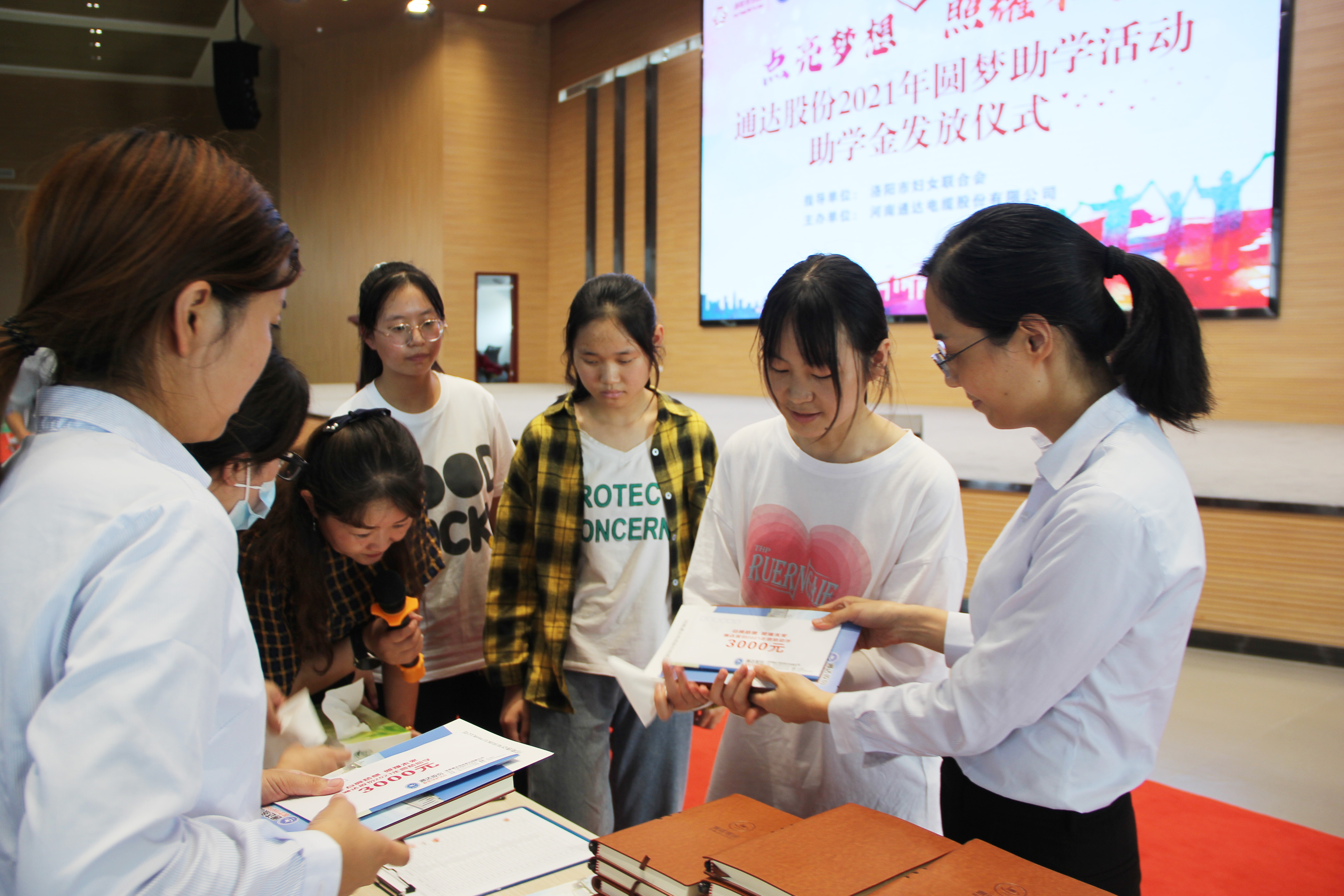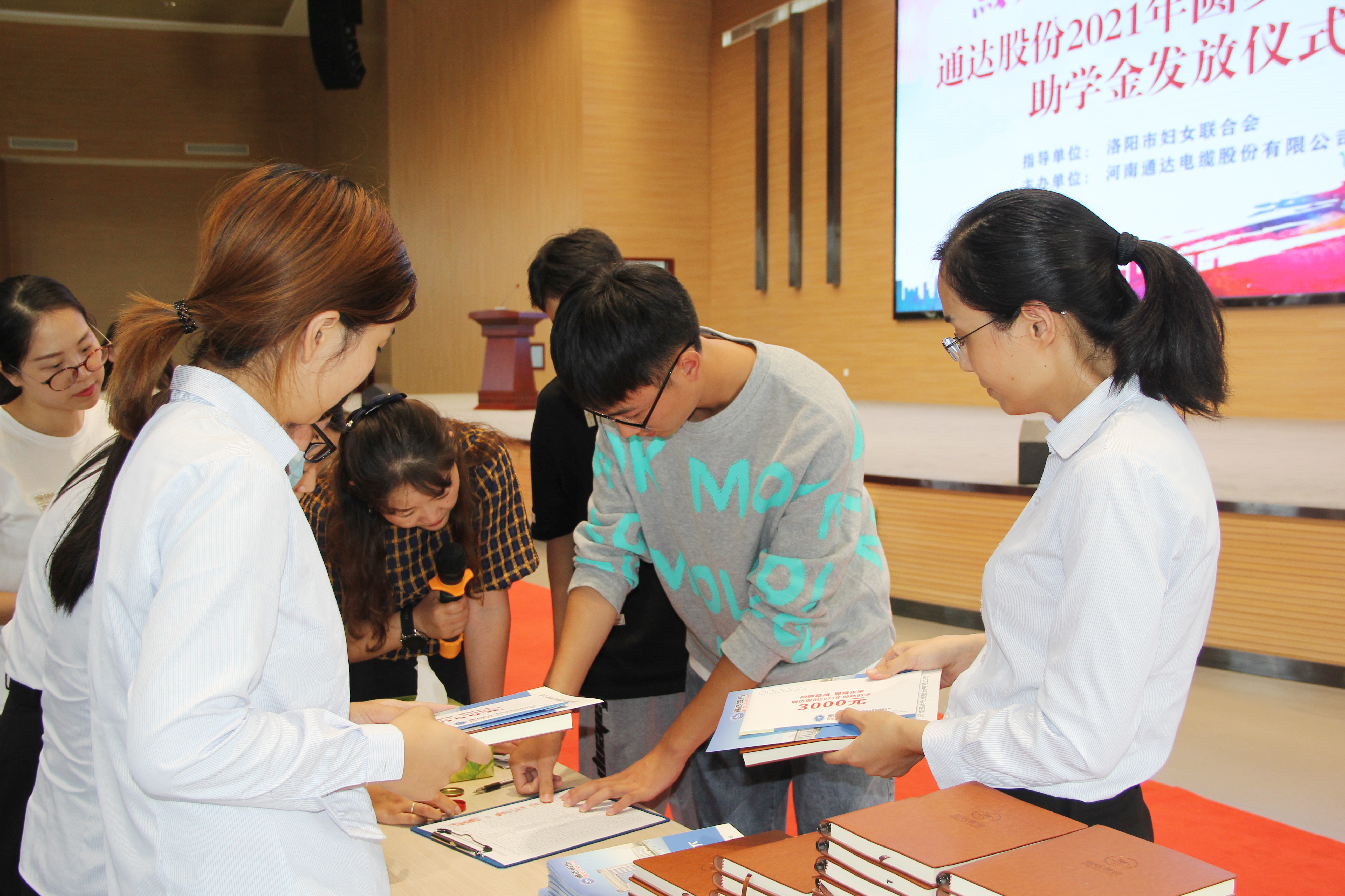 参观完厂区,回到礼堂,观看了公司宣传片,然后圆梦助学活动正式开始。