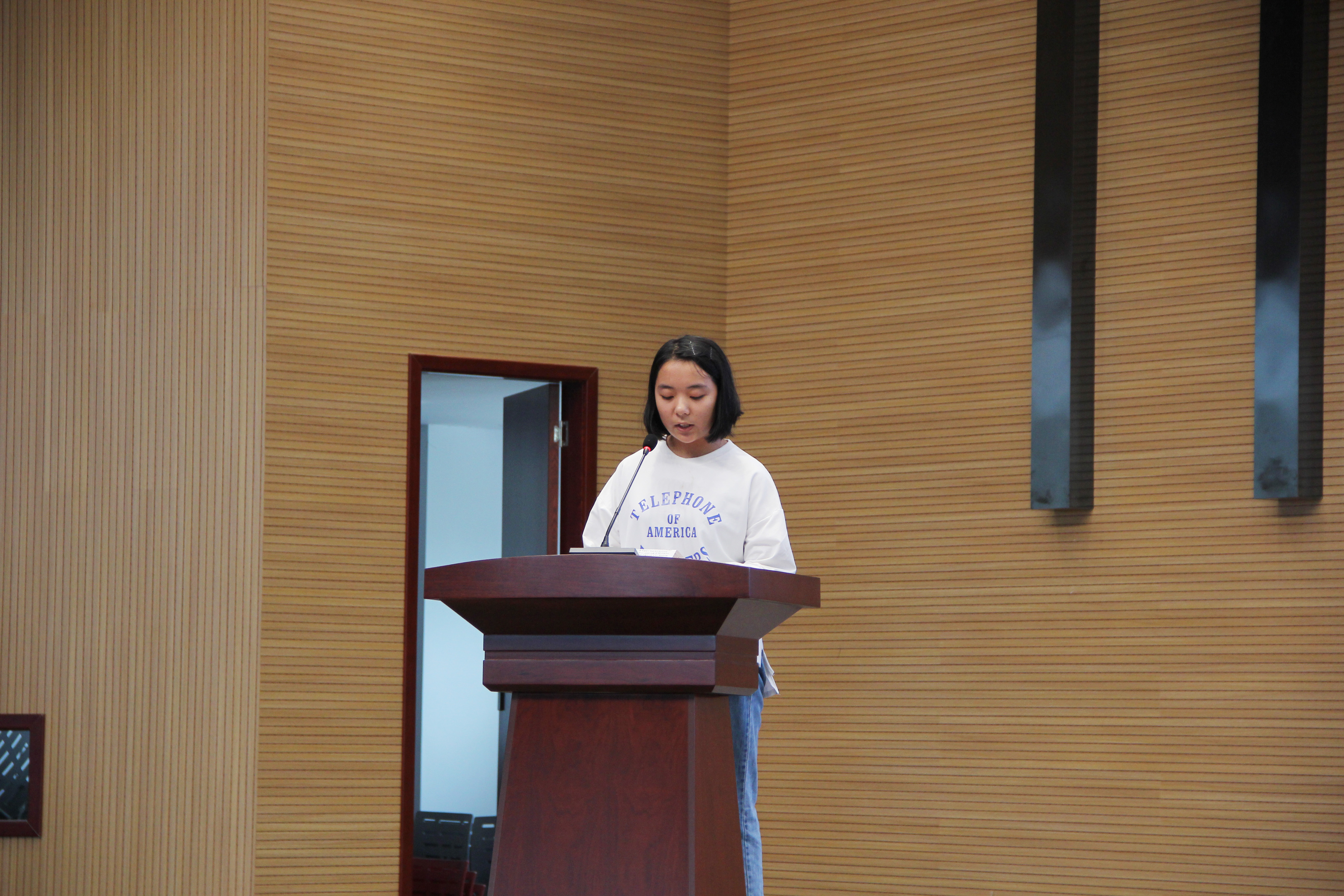 图为乔亚迪同学发言