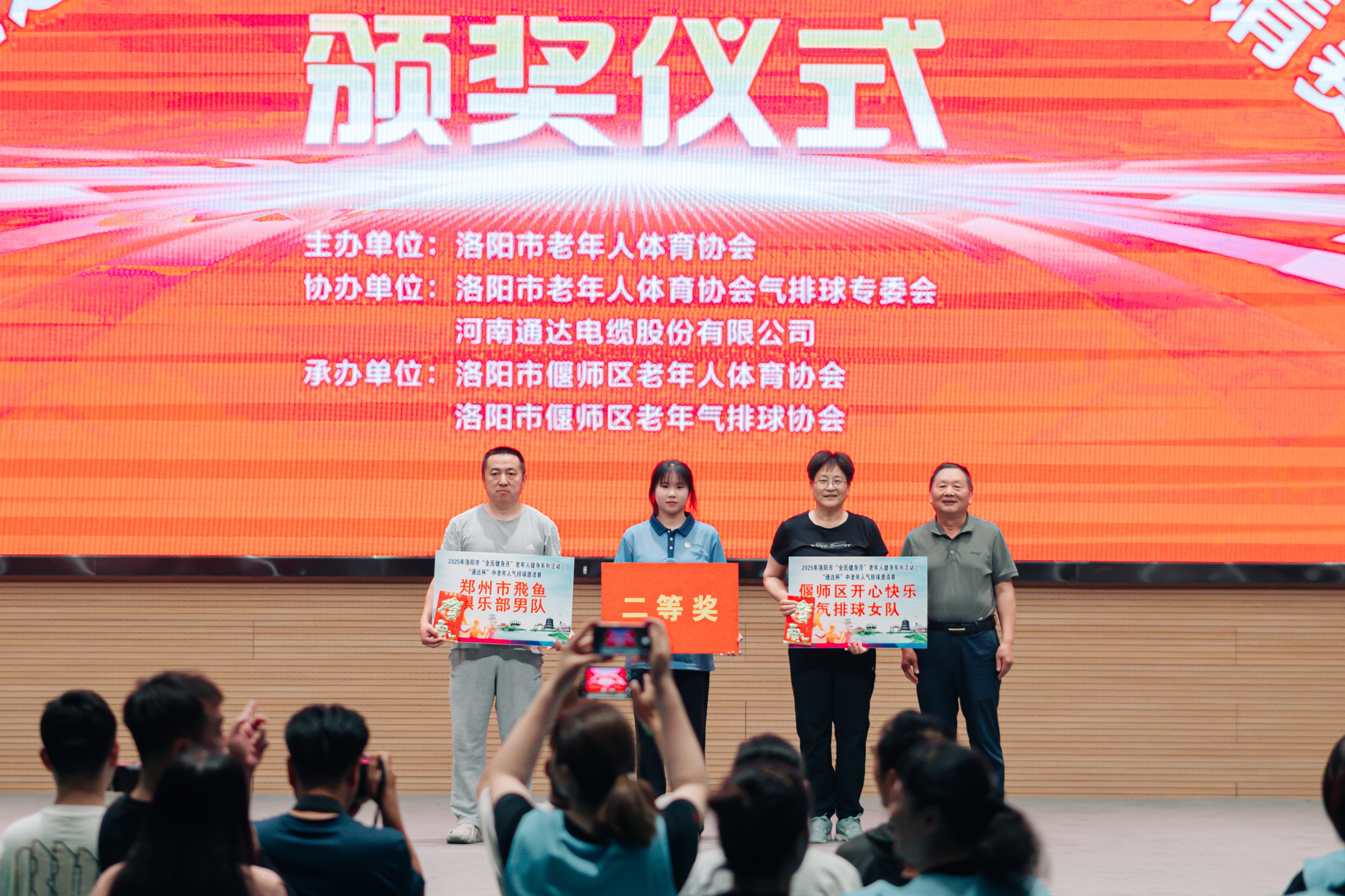 本次比赛由洛阳市老年人体育协会主办,洛阳市老年人体育协会气排球专委会、河南草莓视频污黄色电缆股份有限公司协办。集团公司党委书记、董事长马红菊同志为比赛致辞,代表公司全体员工向参赛的各级领导、嘉宾、运动员、裁判员表示热烈欢迎和诚挚问候。她表示,气排球运动,承载着团结协作、拼搏进取的精神内核,兼具趣味性与竞技性,深受广大人民群众的喜爱,它不仅是锻炼体魄、增强体质的有效方式,更是促进交流、增进友谊的重要纽带,同时祝愿参赛队员在拼搏中收获健康,在协作中传递友谊,用健康的体魄和积极的心态拥抱美好生活。