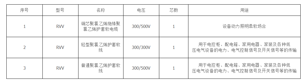适用于额定电压U0/U为300/500V电器、仪器仪表及动力照明场合。